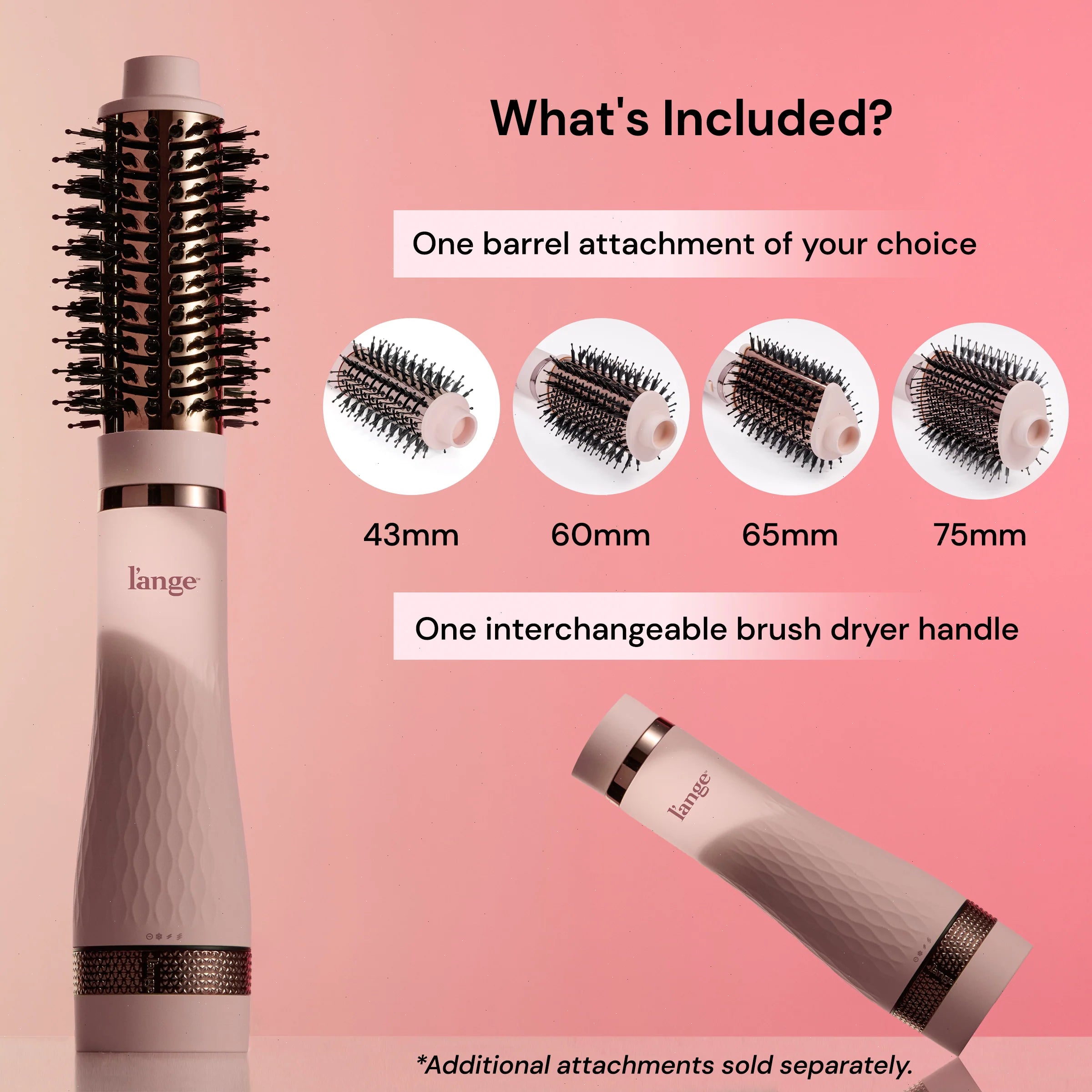 *Includes one barrel attachment of your choice and one interchangeable brush dryer handle. Multi-Volume attachment barrels are designed to only be used on our Multi-Volume Series.Â